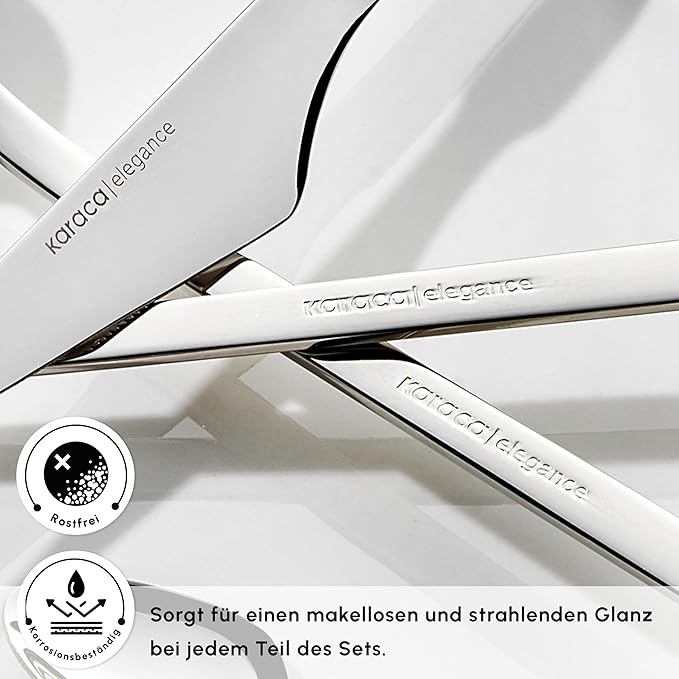 - Complete Set for 12 People: Includes 12 table spoons (21.6 cm / 8.5"), 12 table forks (21.6 cm / 8.5"), 12 table knives (24.2 cm / 9.5"), 12 dessert spoons (16.1 cm / 6.3"), 12 dessert forks (16.1 cm / 6.3"), 12 dessert knives (19.7 cm / 7.8"), and 12 tea spoons (11.2 cm / 4.4"), an ideal set for large family meals, parties, or gatherings.