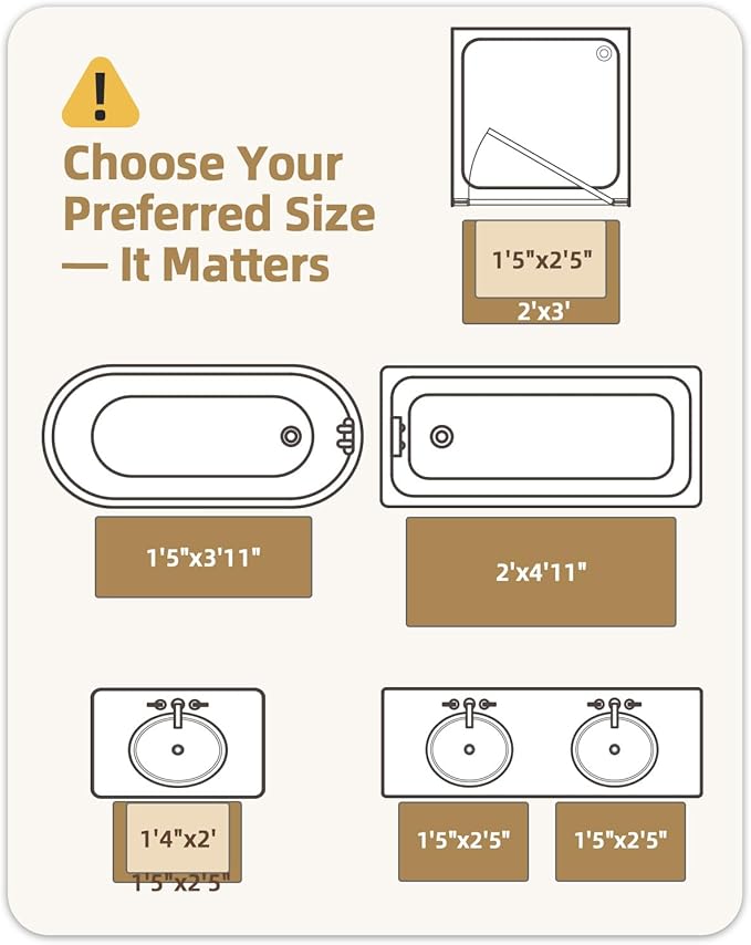 - A MUST-HAVE FOR EVERY BATHROOM: Available in a variety of solid neutral colors, this bathroom floor mat can go with different kinds of decor style; having lots of sizes to choose from, small, standard, large or long runner, you can easily find one to fit in front of the single or double sinks, showers, bathtubs, vanities and more
