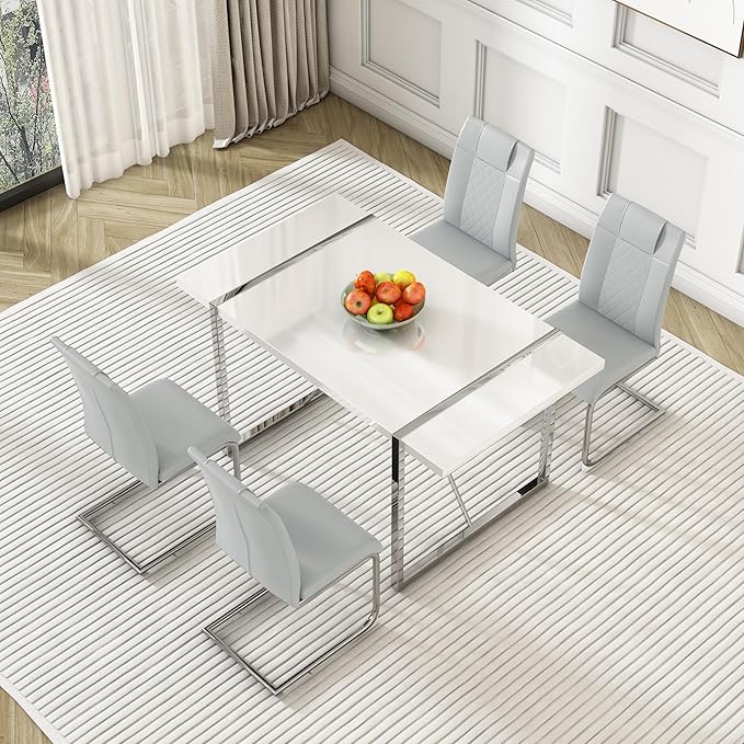 Dining Table Chairs Set for 4, Modern Rectangular Dining Room Table Set PU Leather Upholstered Dining Chairs 55" Dinner Table Set for Kitchen, Dining Room