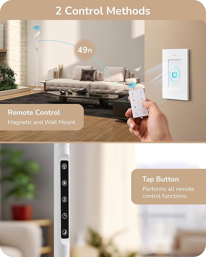 - [Night Light & Timer] Specially designed with a one-touch night light mode, at 0.5% brightness, 12lm and warm 2700K to create a soft and cozy sleep atmosphere; the 30-min/60-min timer tall lamp allows you to set an automatic shut-off time according to your habits, no worry for a more peaceful sleep