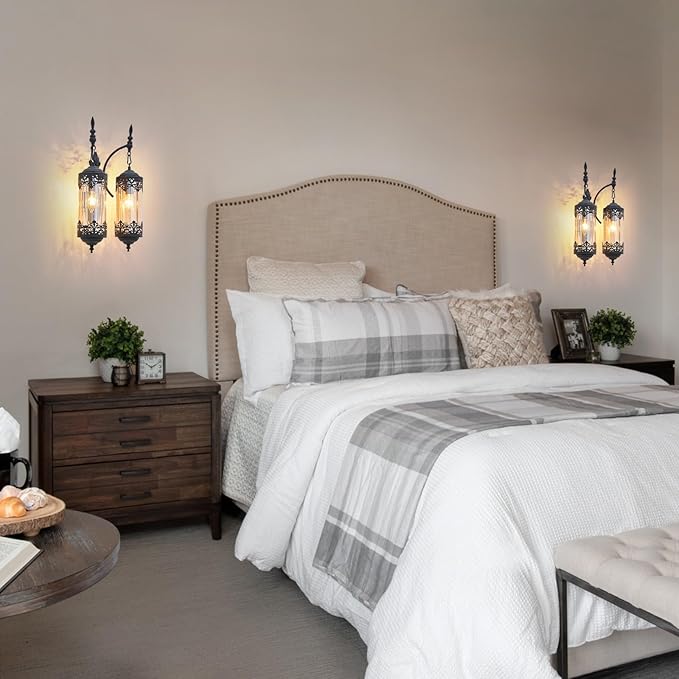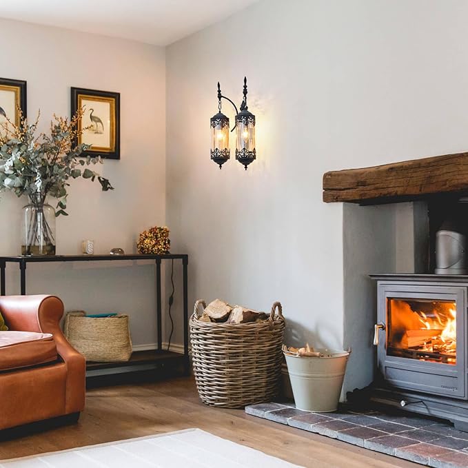 - 【Perfect for Your Home】This vintage farmhouse wall sconce complements a variety of decor themes, from Gothic and industrial to rustic and farmhouse styles. The retro glass wall lamp intricate design and refined shape allow it to blend seamlessly with modern decor, making it a versatile addition for living rooms, bedrooms, entry, fireplaces, and hallway.