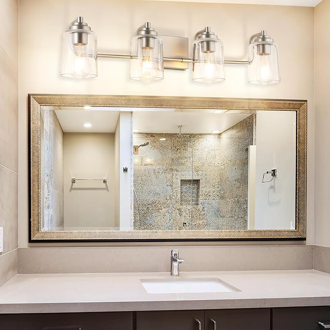 SOLFART Brushed Nickel 4-Light Vintage Vanity Light Fixtures for Bathroom, 13.4 x 7.1 x 7.7 inches