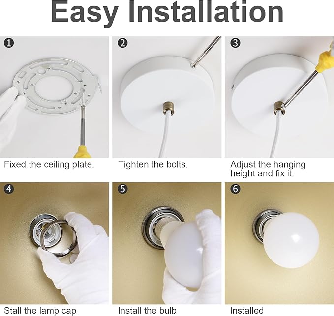 - [Lighting installation] The installation steps are very simple. The open design of the dome lampshade makes it easy to replace the bulb. Suitable for installation in industrial modern kitchens, dining rooms, living rooms, bedrooms, corridors, entrances, and bar counters.