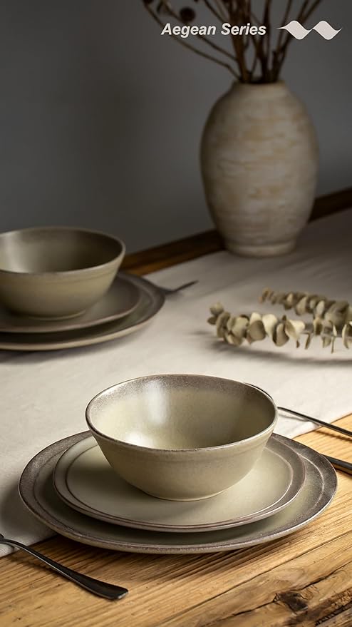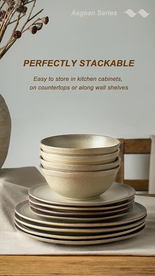 - BEAUTY MEETS UTILITY: Our stoneware dinner set is durable enough for everyday use and beautiful enough to enhance special celebrations. The irregular rim and embossing ring design make it easy to separate and stack. It will definitely stand out in the crowd and create a charming table-setting