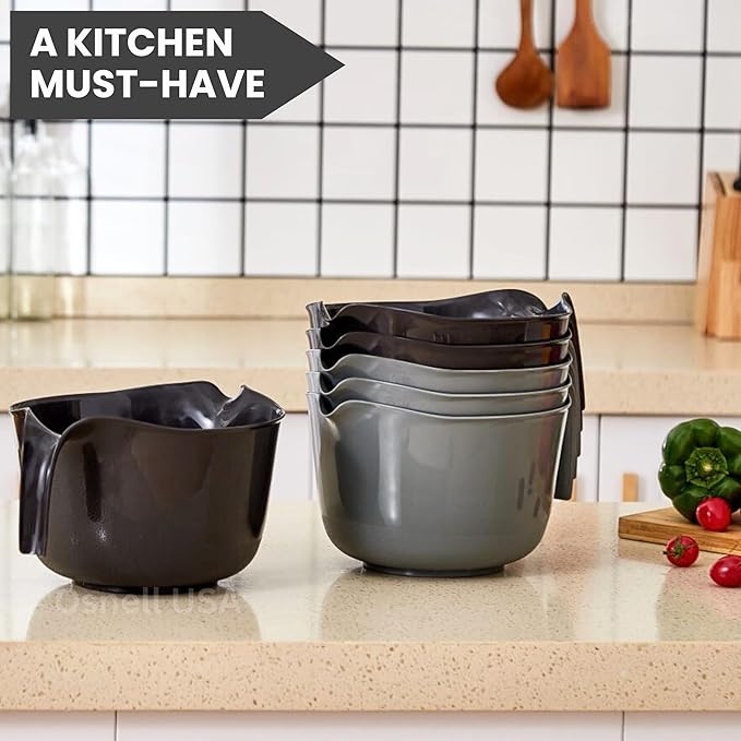 - Mess Free Pour Spout Bowls: Our mixing bowls are constructed with an embedded pour spout that reduces spillage while transferring mixes and is perfect for pouring for pancakes, cakes, and more. Keep your kitchen clean and mess-free
