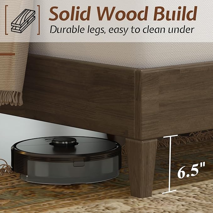 - Sturdy Wooden Structure: Made with durable solid rubber wood, this platform bed frame brings out the beauty of natural wood grain, offering long-lasting support.