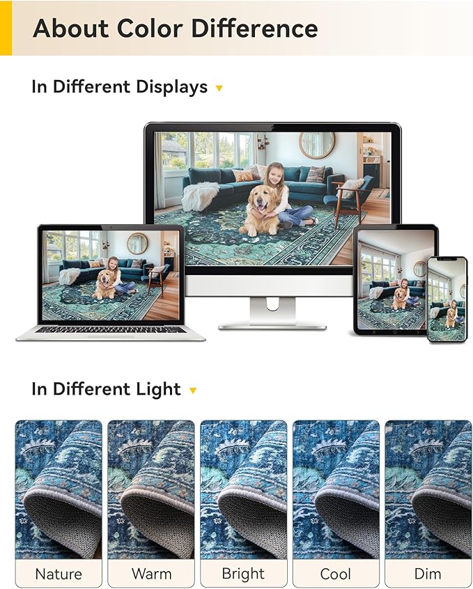 - About Crease: you may notice some folds on your rug upon receiving it. These are just from the way it was packaged during shipping. With regular use, the creases should naturally disappear within a few days. However, if you want to speed up the process, you can try folding the rug in the opposite direction or placing a heavy object on top of the creases to help flatten them out faster.