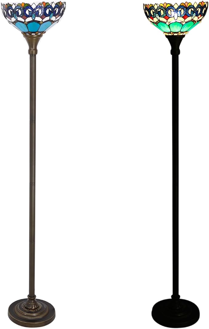 Tiffany Floor Lamp Torchiere Stained Glass Torch Lamp 12X12X67 Inch Antique Standing Corner Light (Blue Jewelry Baroque)