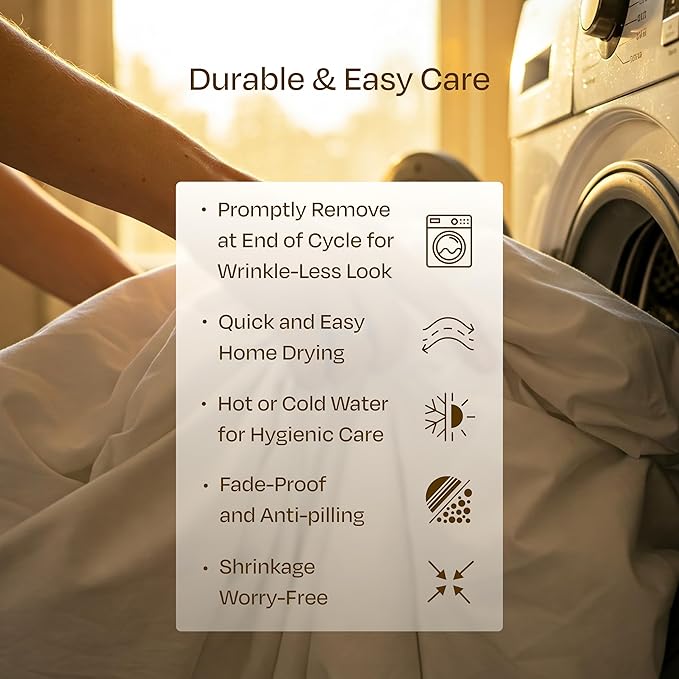 - Our Commitment: We prioritize comfort, community, and sustainability. Since 2022, we've donated over 36,000 bedding items to US charities and removed plastic from our packaging. Sheets are crafted in our family‑owned factory in India with care and quality‑checked—thread count may vary by ±5% due to standard manufacturing limits. Enjoy affordable luxury and hassle‑free returns for a better night’s sleep.