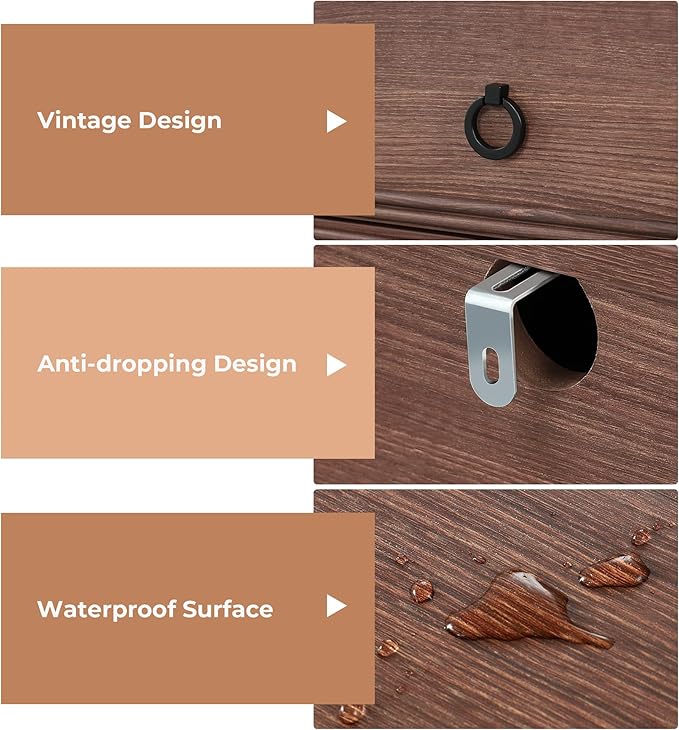 - 【Vintage Expression】With wood lines and a vintage handle design, VVFLU drawer dresser never goes out of style. Fitting right in, in the bedroom or wherever you place it. Long-lasting, both in style and quality.