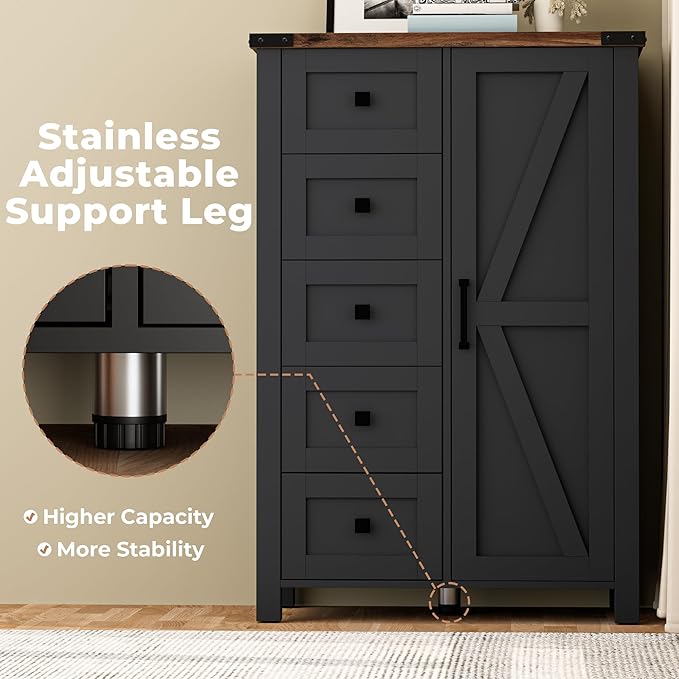 - 【Easy Assembly】With concise instructions and labeled components, the 5 drawer dresser with barn door for bedroom is much easier to assemble.
