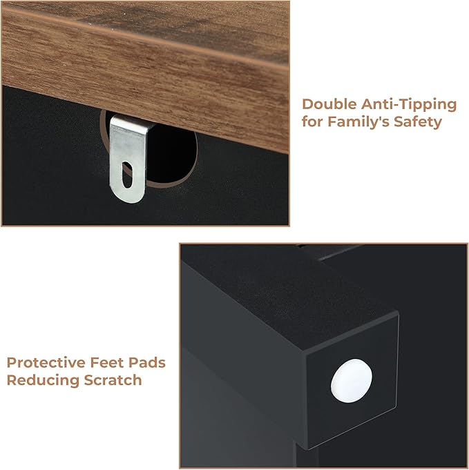 - 【Safer & Anti-Scratch】The 5 drawer dresser features double anti-tipping device and protective feet pads. The former can prevent falling down, protecting your family. The latter can protect both your dresser and floor from wear and scratches. Much more durable.