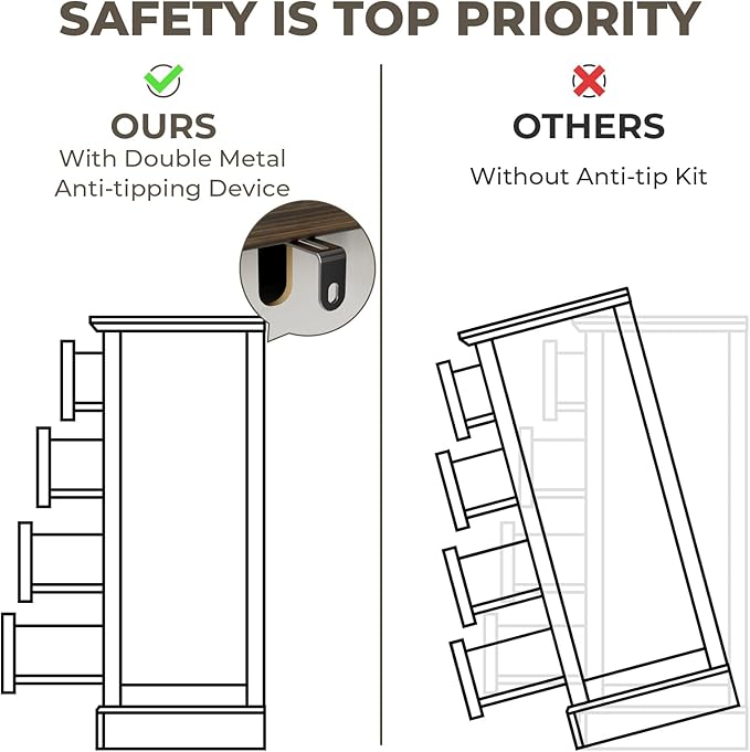 - Sturdy Construction: Built to last, this dresser is crafted from high-quality MDF. The sturdy frame can withstand the test of time and daily use. The thick wood panels provide excellent stability, while the carefully applied finish not only enhances its aesthetic appeal but also protects against scratches and wear that will serve you for years to come.