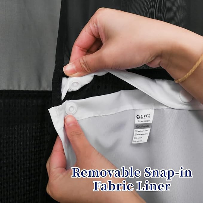 - ⭐️[Easy To Care]:This textile hotel shower curtain with detachable liner can be easily cared with machine wash or hand wash.This 54W X 80H inch snap shower curtain with 53W x 60H attached replacement cloth inner liners fits for any standard size shower,bathtubs,clawfoot tub and straight or curved shower rods