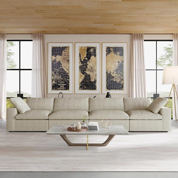 - ⛅ [Durable And Sturdy] This living room couch has a built-in pine frame structure, which increases the comfort of sitting posture and the stability of the 4-seat sofa, with moderate hardness. Our living room modular sofas couches will definitely leave a deep impression on people. You can rest assured on the sofa and enjoy the fun of family or social gatherings.