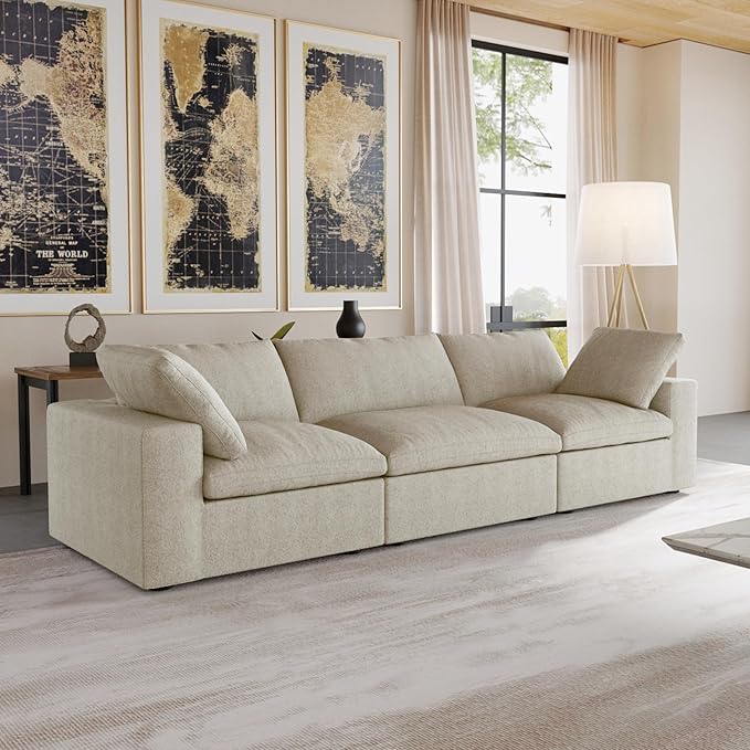 JACH 3-Seater Cloud Modular Sectional Couches, Convertible Couch, Cushion Covers Removable, Cloud Sofa, Sectional Sofas for Living Room Bedroom Apartment, (Khaki)