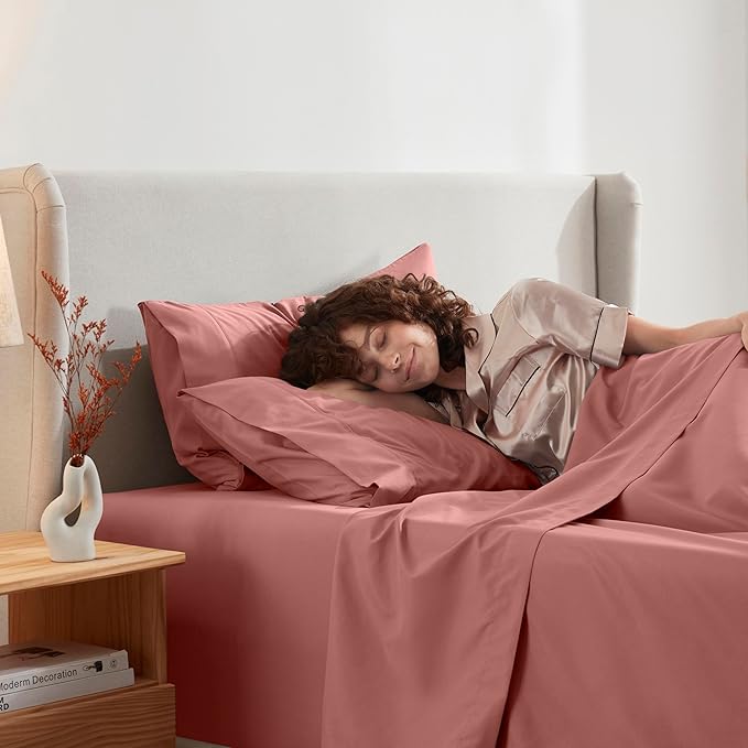 Nestl Luxury 1800 Ultra-Soft Microfiber Full Bed Sheets - Double Brushed - Deep Pockets - Easy Fit - 4 Piece Set - Bedding Sheets & Pillowcases (Full, Pink Clay)