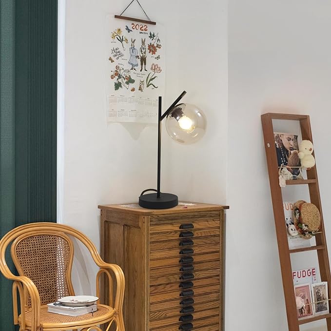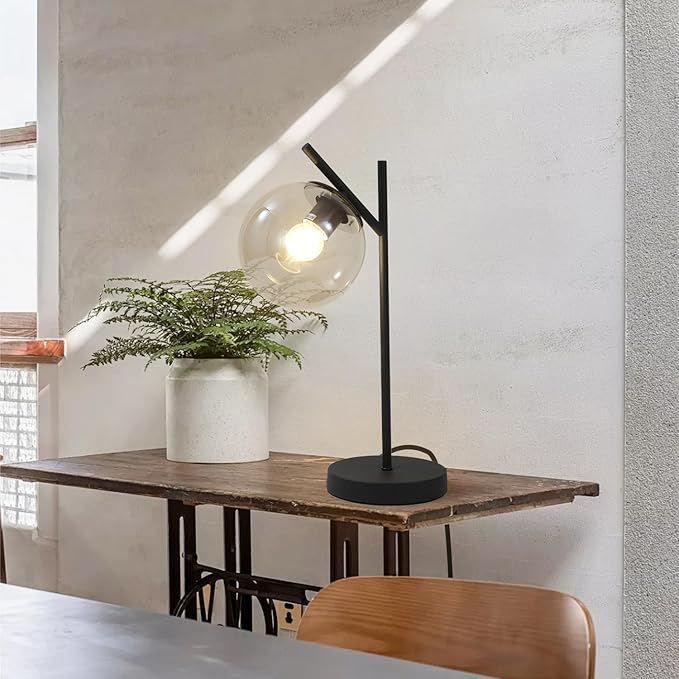 - 【Widely Application】Vintage design table lamp will add a touch of beautiful and elegance to your home or office give you a good experience. Modern ball glass desk table lamp suitable for bedside, bedroom, living room, study room, coffee table, etc.