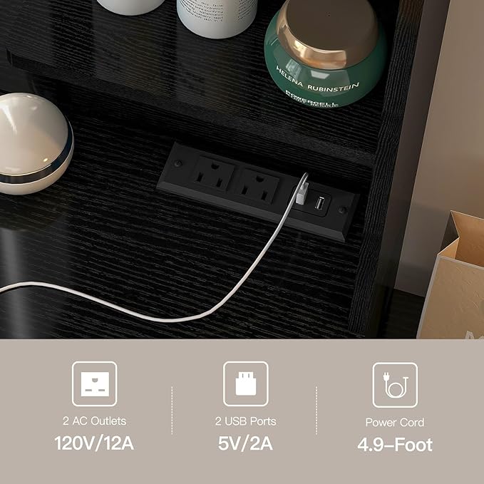- Built-in Charging Station: The vanity makeup mirror desk has 2 standard plugs and 2 USB ports. Now you can easily power up your hair dryer, curling iron, and other styling tools without any hassle or limitations. Enjoy a perfectly organized beauty routine!
