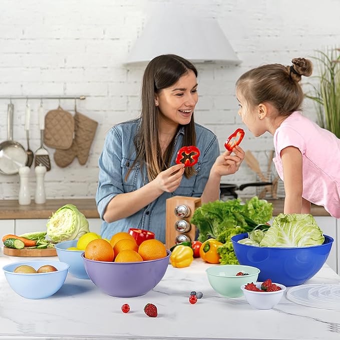- đăA Variety of Sizesă: This nesting bowl set is fit for all your prep and storage needs, such as mixing batter, storing leftovers, tossing salad, or marinating. The set includes 6 plastic bowls with 6 transparent lids in multiple sizes: 0.25L, 0.6L,1.15L,2L,3.35L and 5.25L.