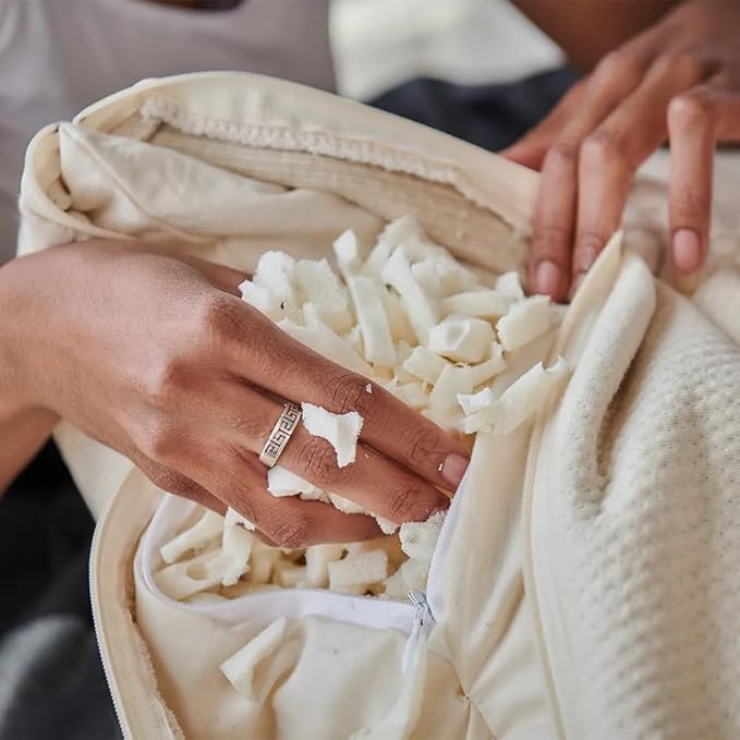 - ADJUSTABLE COMFORT: Customize your pillow by adding or removing latex fill to suit your preference. Whether you need a firm or soft pillow, you can adjust it to your liking with the zippered construction and extra bag of fill.