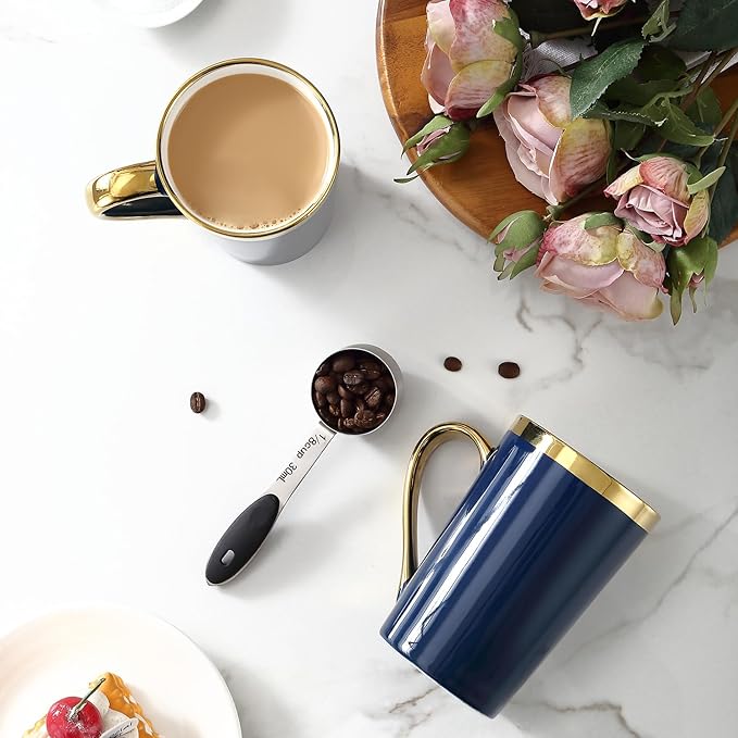 Coffee Mugs,12OZ Ceramic Coffee Mugs Set of 6,Cups with Large Handles for Men Women, Porcelain Big Mug for Tea Latte, Housewarming Wedding Gifts (blue and gold)