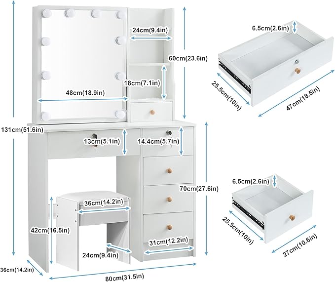 - ๐ใ๐๐๐ซ๐๐๐๐ญ ๐๐ง๐ ๐๐ฑ๐ช๐ฎ๐ข๐ฌ๐ข๐ญ๐ ๐๐ข๐๐ญ ๐๐จ๐ซ ๐๐๐ซใThis stylish, elegant and practical vanity makeup set can be an ideal gift for your beloved one. Love of beauty is what every woman strives for, and she will love and be excited to receive a beautiful vanity table for her birthday, Valentine's Day, Christmas and other special holidays!