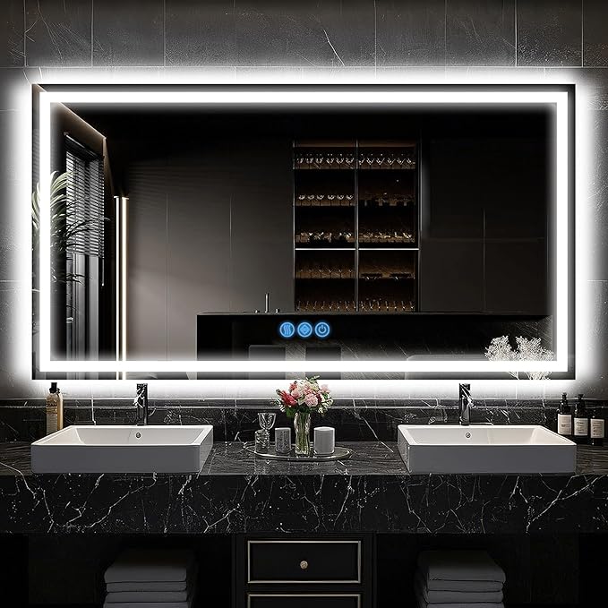 Antok 30"x 55" LED Bathroom Mirror with Lights, Anti-Fog, Dimmable, Lighted Vanity Mirror with Tempered Glass, Memory Function, 3 Light Modes, Safe Use, Horizontal, Vertical