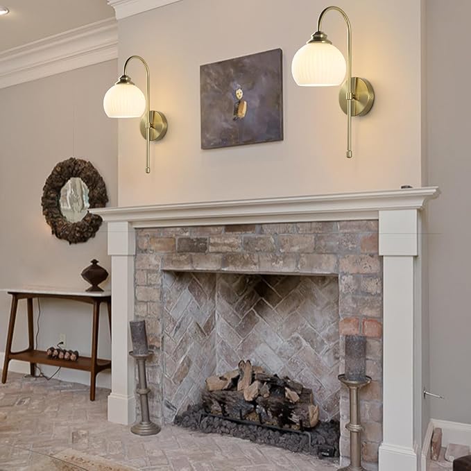 - Widely Used & Elegant Decoration: The brass bathroom vanity light can be well integrated into various decoration styles, provides excellent lighting for your room. The fireplace wall sconces ideal for living room, bedroom, bedside, dining room, children’s room, reading room, guest room, study room, laundry room, hallway, stairs, corridor, stairwell, fireplace, powder room, porch, entrance, mirror. indoor wall sconces long also ideal for commercial areas: bar, cafe, hotel and restaurant. Recommended area: 50-120 square feet