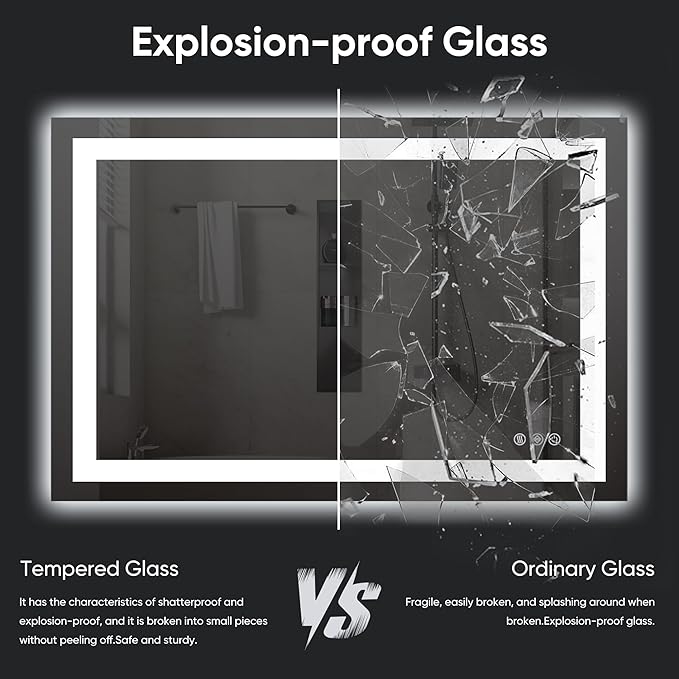 Antok 32"x 48" LED Bathroom Mirror with Lights, Anti-Fog, Dimmable, Lighted Vanity Mirror with Tempered Glass, Memory Function, 3 Light Modes, Safe Use, Horizontal, Vertical