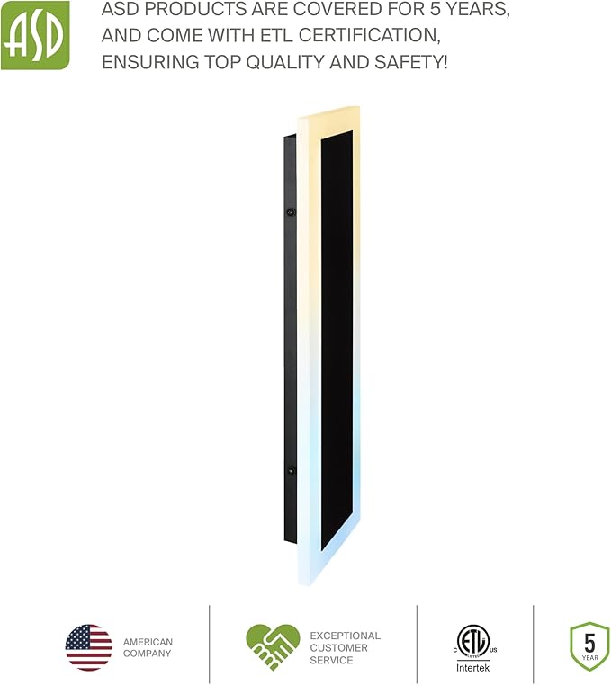 ASD LED 24" Long Wall Mount Light Fixture, Outdoor & Indoor Linear Sconce | 3CCT, Dimmable, Waterproof, Anti-Rust, ETL Listed | 24W 2000LM 3000-5000K 100-277V | Exterior Porch Lighting | Black