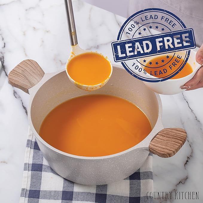 Country Kitchen Non-Stick Cast Aluminum Cookware Set - Durable Kitchen Cookware for Everyday Cooking, Cream, 15 Pc.