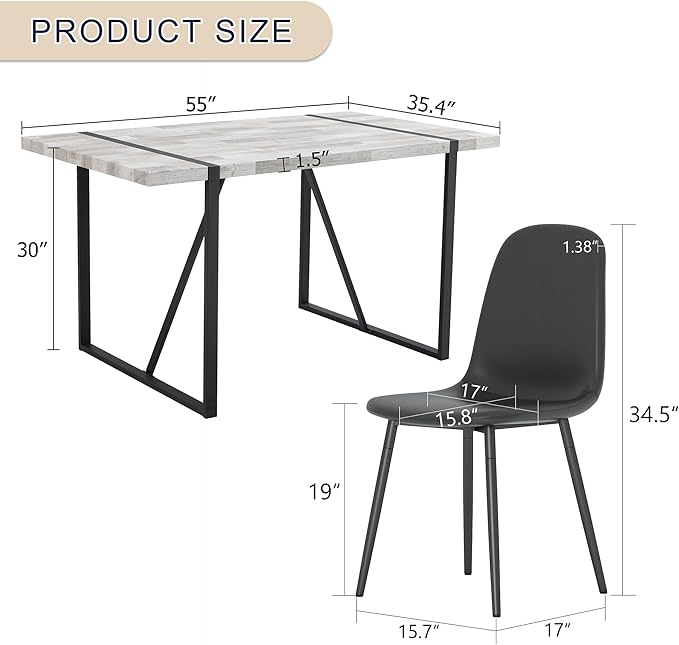 Dining Table Chairs Set for 4, Modern Rectangular Dining Room Table Set Upholstered Dining Chairs 55" Dinner Table Set for Kitchen (Grey Table & Black2 Chairs, 55 inch Table + 4 Chairs)