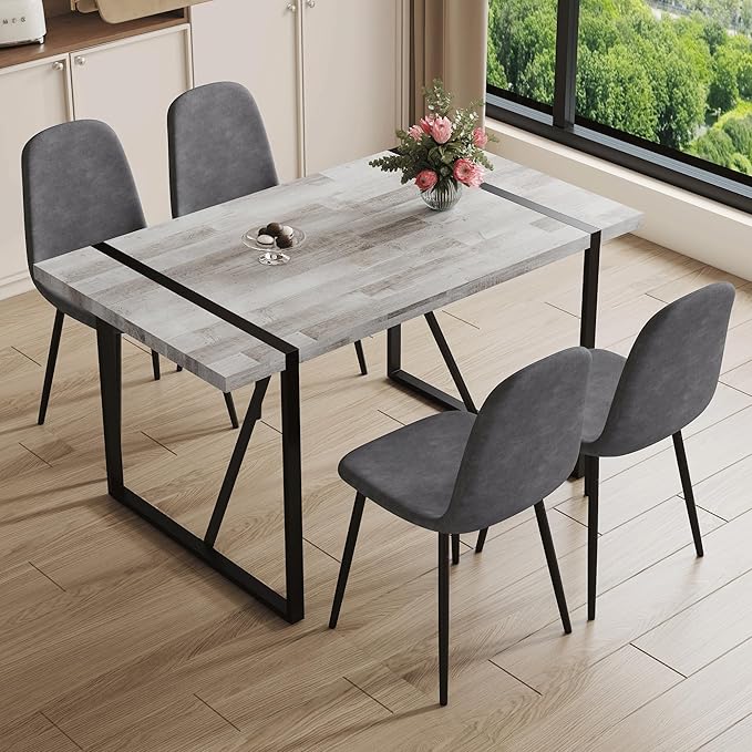 Dining Table Chairs Set for 4, Modern Rectangular Dining Room Table Set Upholstered Dining Chairs 55" Dinner Table Set for Kitchen
