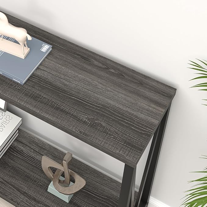 - Modern Entryway Table: Dark grey wood grain finish exudes rustic allure, while the metal V-design sides add a industrial flair. Elevate your entry small space with this entry table, marrying rustic charm with modern elegance.