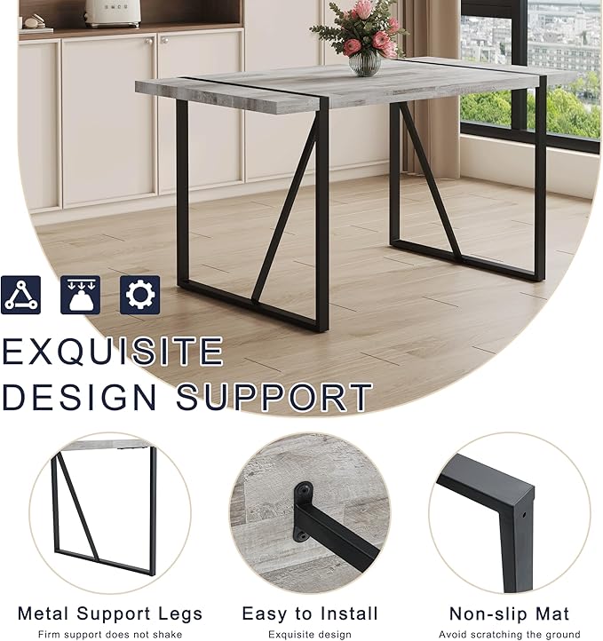 - Artistry of Industrial Design: The clever fusion of unique MDF material and metal frame brings forth a distinctive industrial style, elevating your space to a higher artistic level. Paired with leather chairs, this dining table skillfully combines modern design with classic comfort, bringing a touch of fashion to your dining area.