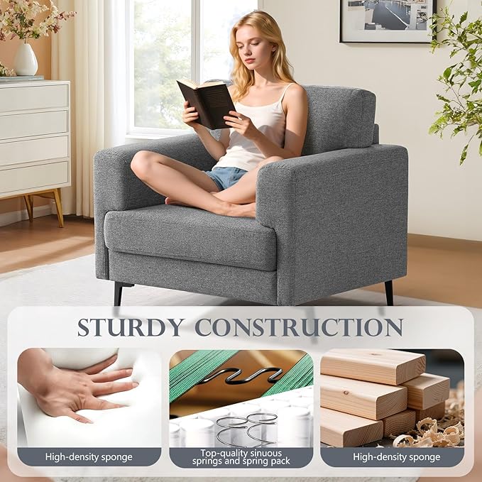 - ✔【Unique Design & Multi-Scene Use】This accent chair features a spacious seat with ample 6.3‘’ width armrests; back cushion is removable, The seat cushion nestles against ample armrests, while the removable back cushion is easily plumped up to keep looking great over time. it's the perfect addition for your living room, bedroom, office or entryway.