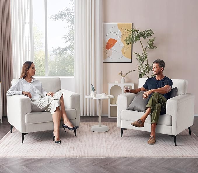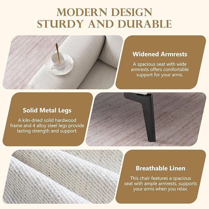 CDCASA Accent Chair, Linen Fabric Oversized Mid Century Modern Chair Set of 1, Comfy Upholstered Armchair Reading Accent Chairs Sofa Chairs for Bedroom Living Room, Beige