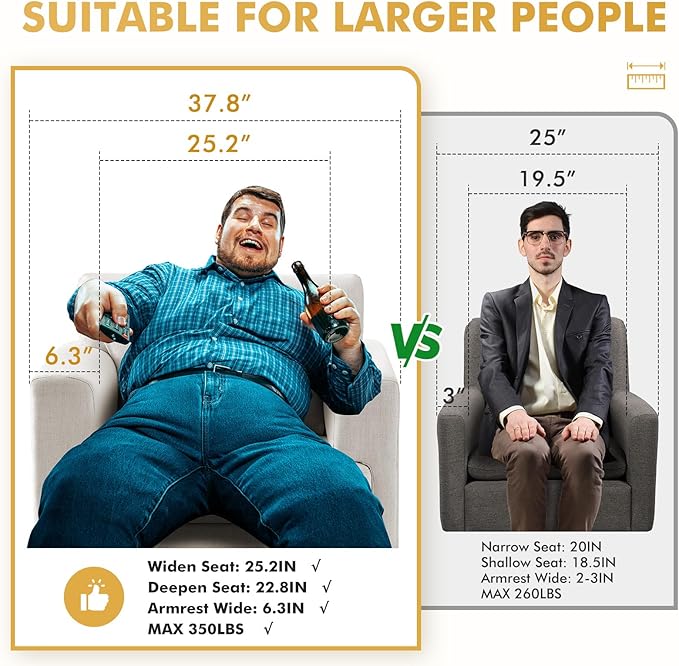 - ✔【COMFORTY BACKREST】 Add the optimal combination of class and comfort with the Ergonomic design of the backrest and upgrade head support and with large enough cushion (25.2" W x 22.8" D). which is very soft to sit. you sit in a soft chair, for napping or reading or playing mobile, what a pleasure it is?