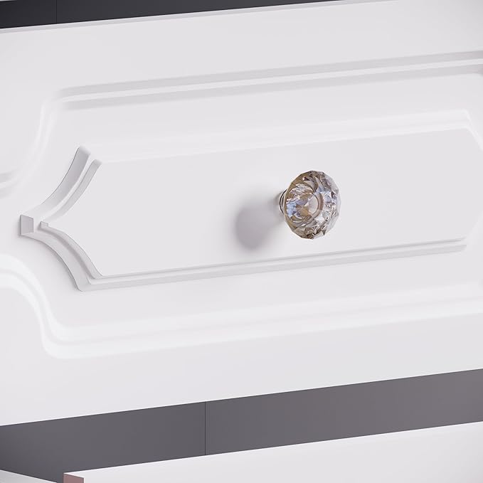- đăStylish & DurableăWildhome vanity features a distinctive panel design with a rectangle and inverted rounded corners, adding sophistication and elegance. The unique geometric pattern creates depth and serves as a striking focal point in your bedroom. Enhanced with crystal knobs, it combines style with high-density, waterproof, and scratch-resistant materials, ensuring durability and a fresh, vibrant look that complements various interior styles.