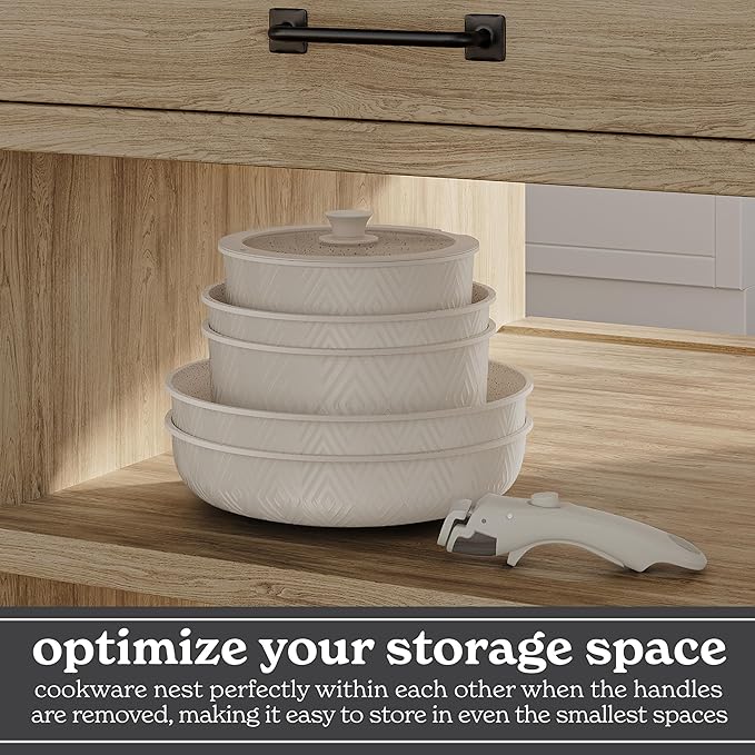 - Optimal Storage: With our stackable cookware set with detachable handle, you can finally declutter your kitchen cabinets while still having all the cookware you need.