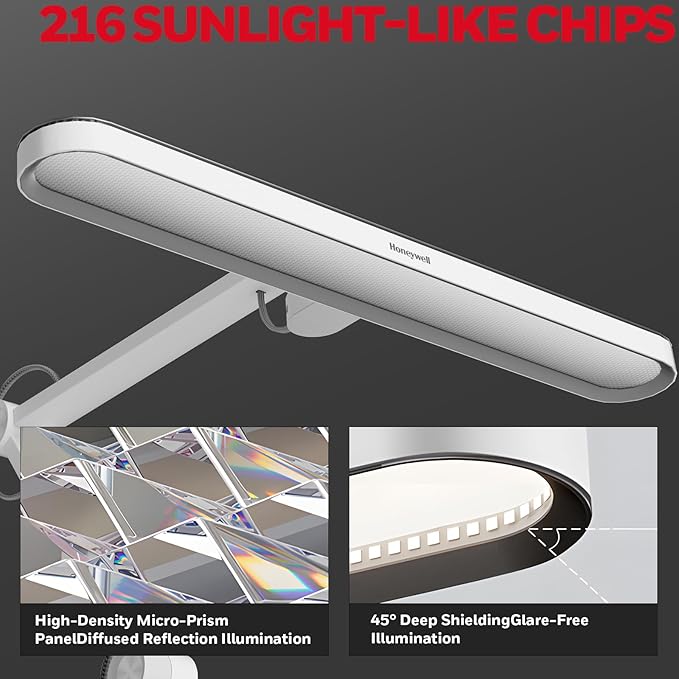 - 【Super-Bright Office Floor Lamp】Honeywell LED standing lamp is designed with the latest Sunturalux technology, featuring 216 lamp beads that simulate natural light for an enhanced lighting experience. With a brightness of 1500LM and a high color rendering index (CRI>97), this bright floor lamp ensures exceptional clarity and accurate color representation, allowing you to see every detail in the most vibrant way. Perfectly suited for your living room, study room, offices, piano room, and workplace.