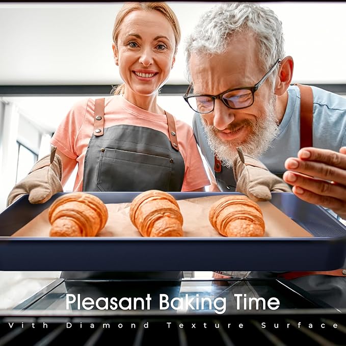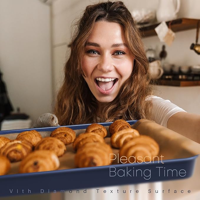 - Premium Ceramic Nonstick Coating: The baking set boasts a top-tier ceramic nonstick coating inside and out, complete with a stylish diamond pattern inside. Say goodbye to sticky cakes, cookies, and muffins with this innovative design