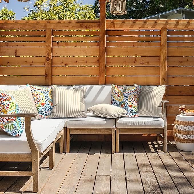 - đŚď¸ ăALL WEATHER USEă: These outdoor throw pillows are made of durable polyester fabric and soft PP cotton. Itâs water repellent, fade-resistant and anti-pilling. Wonât fading under the direct sunlight over 500 hours. The insert is filled with soft PP cotton, overstuffed construction for enhanced comfort and longevity. This fluffy accent pillow measures up multiple use conditions, like patio furniture sofa, garden, coach and bedroom.
