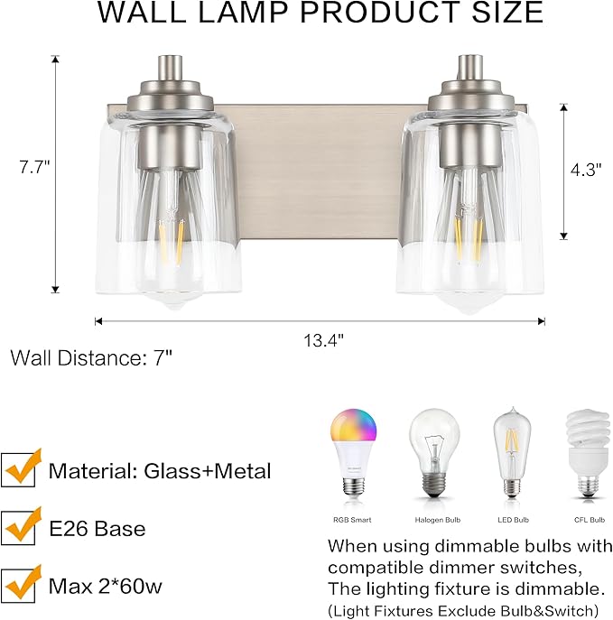 - 1.【EASY TO INSTALL】15-Minutes Easy Installation, hardwired, attach the globe to the light only, USA standard back plate. This bathroom light fixtures nickel directly connects to the reserved wire and then mounts to the wall.