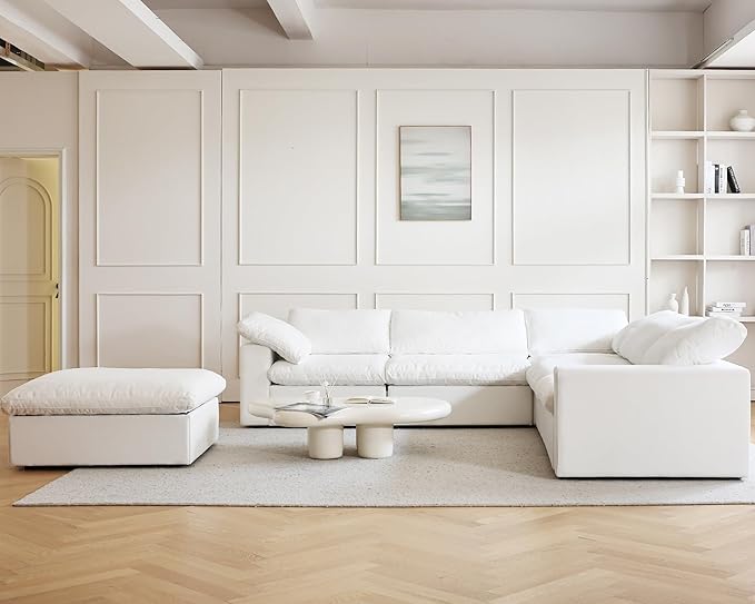 JACH V Shape Cloud Couches for Living Room, Modular Convertible Sectional Sofa Couch, Couch Cushion Covers Removable, Cloud Sofas with Chaise Ottoman for Party Living Room, Bedroom, Apartment (White)