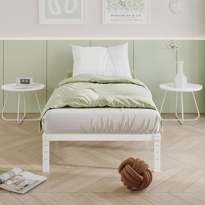 12 Inch Twin XL Bed Frames, Heavy Duty Metal Bed Frame Twin XL, No Box Spring Needed, Easy Assembly, Noise-Free, White