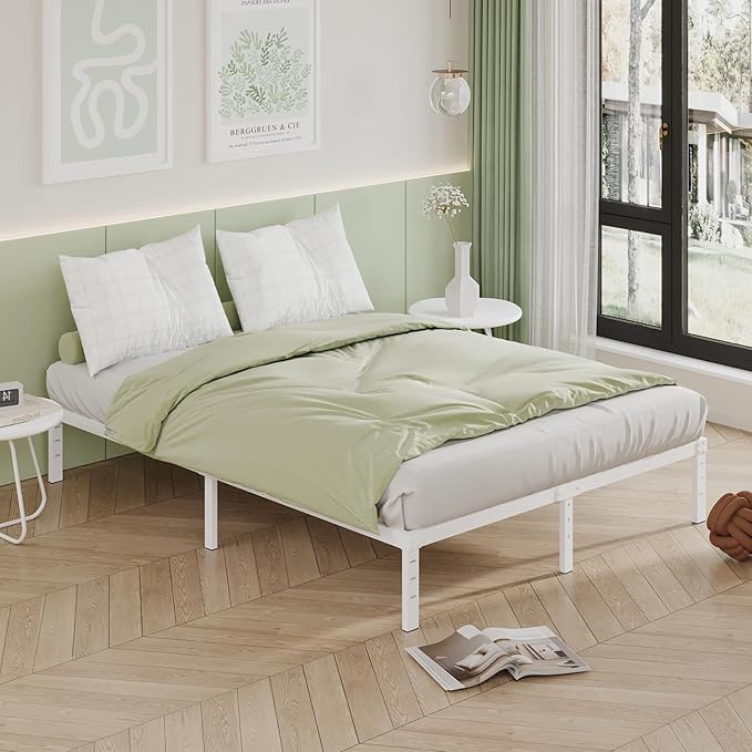 12 Inch Bed Frame Queen Size, Heavy Duty Steel Queen Bed Frame No Box Spring Needed, Mattress Foundation, Easy Assembly, Noise-Free,White