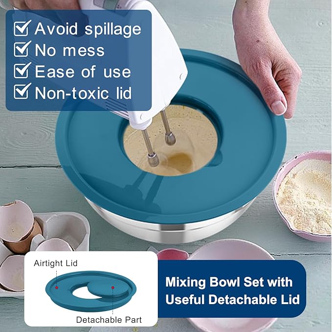 - Stackable & Kitchen Essential - The nesting bowls can be stacked together one by one and store in the largest bowl (5 in 1 bowl), Space saving and easy to store in the kitchen cabinet, Keep your kitchen neat and tidy, Color covers provide attractive look and complement to kitchen décor, A great choice for your friends and families at various holidays