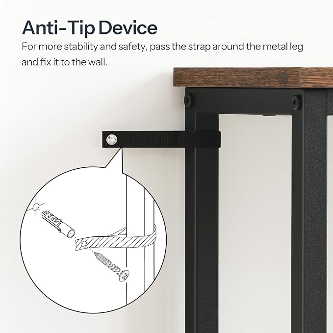 - Sturdiness and Longevity: Crafted from quality particleboard and metal, this console table offers superior stability and durability. An anti-tip device enhances overall stability, while the 4 adjustable feet adapt to uneven surfaces and prevent scratches on your floors